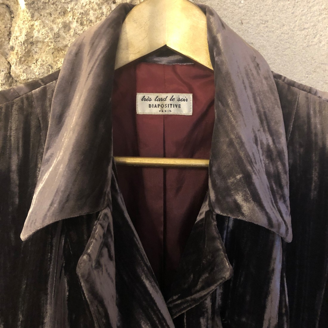 Blazer à double boutonnage Vintage de chez Diapositive. Beau velour gris, épaulettes, très bien coupé. Peut convenir à taille 36 ou 38.